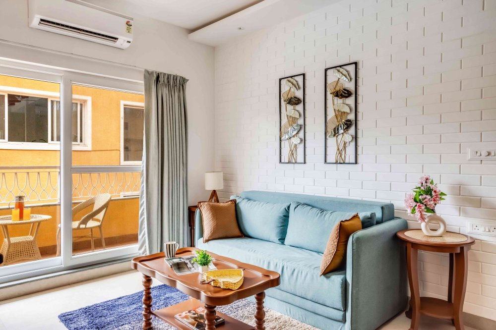 Step into this luxury 1BHK apartment featuring a spacious living room seamlessly connected to a fully equipped kitchen. The bedroom includes an attached bathroom and a private balcony, perfect for relaxing with views of lush greenery and the soothing sounds of nature.