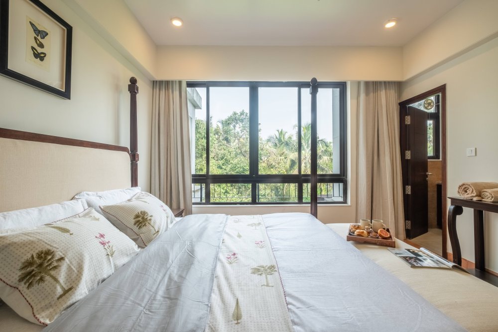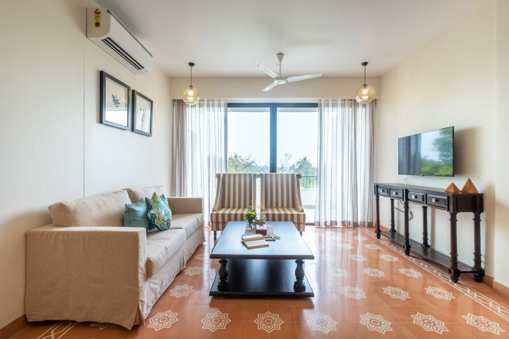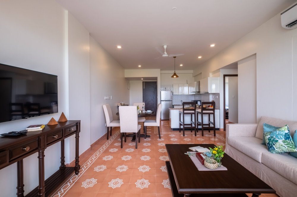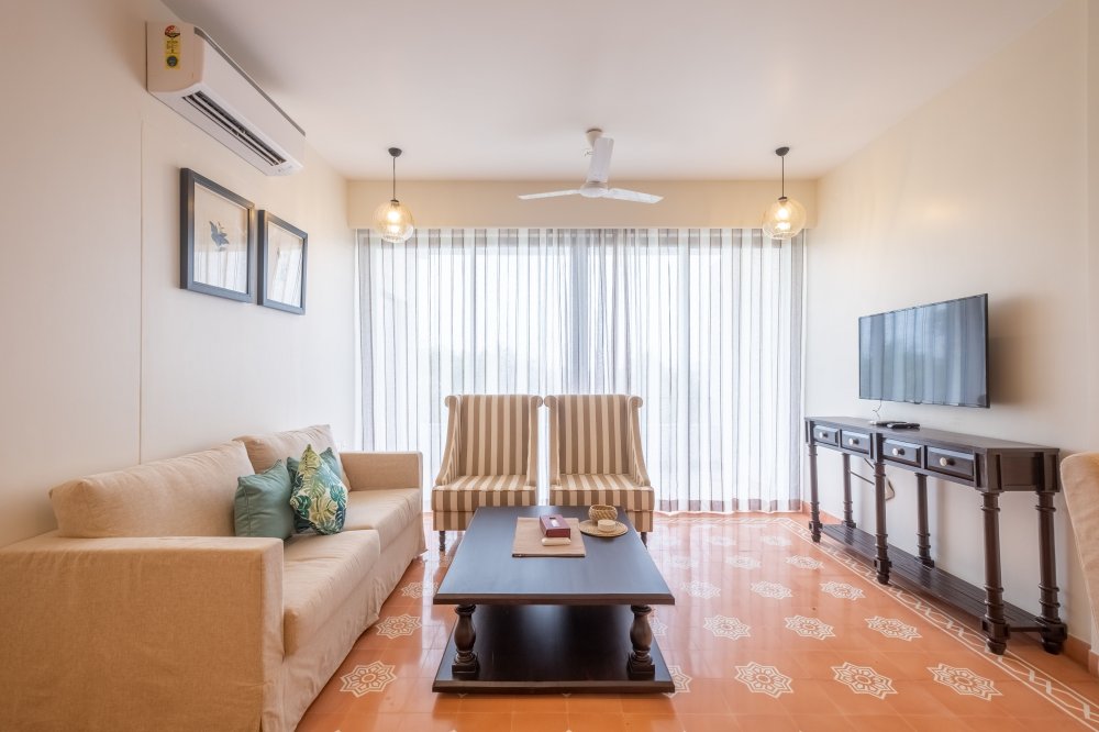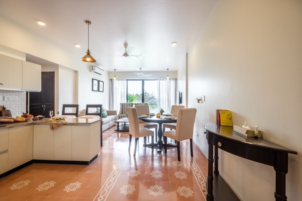 Luxury 2BHK apartment with exquisitely set living room, kitchen and bathroom in the heart of Goa. Situated in Candolim, 800m walk to the beach, the place has all the amenities specifically the wide infinity pool among the lush green fields. Located in one of the most plush and urban areas of North Goa, the home offers beautiful views of the sojourn beauty of grasslands and the sounds of birds like parrots and peacocks feel so divine.