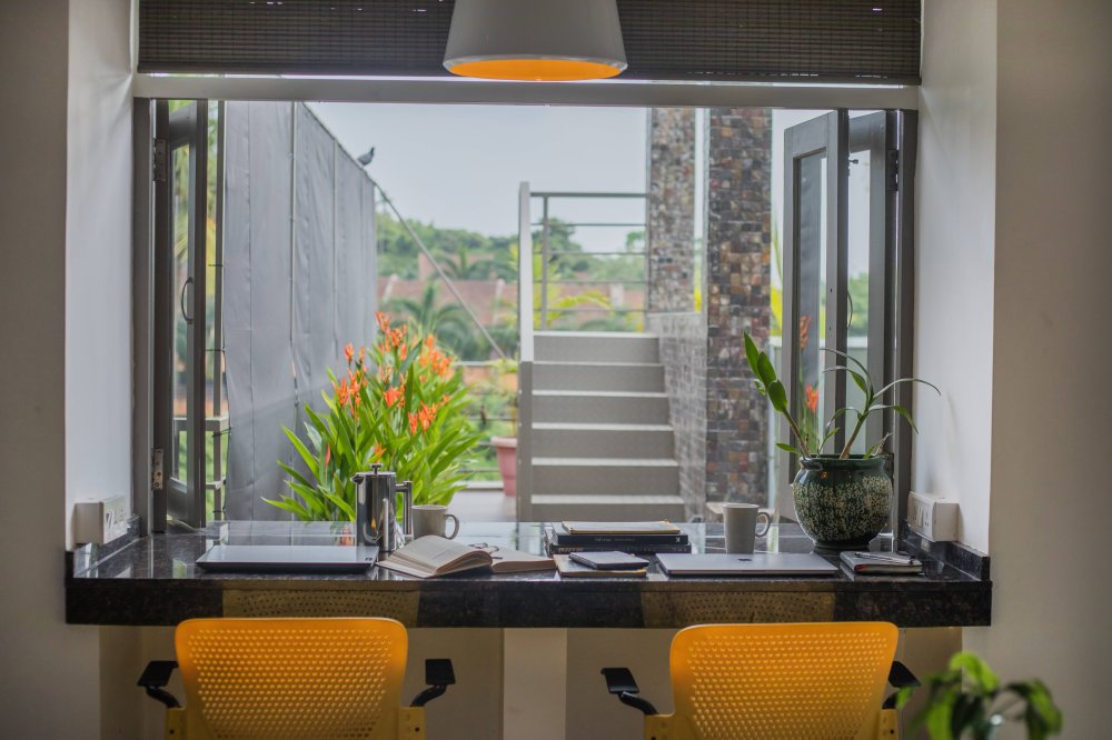 Located in the tiny bay facing village between Reis Magos and Nerul in North Goa, overlooking the bay and lush green views, split over two floors the space is environment-friendly, using locally sourced materials and textiles. The stylish bedroom is extremely spacious with an ensuite bathroom and steam room and has uninterrupted views of the sea. The bedroom also has a storage space for your personal belongings.
