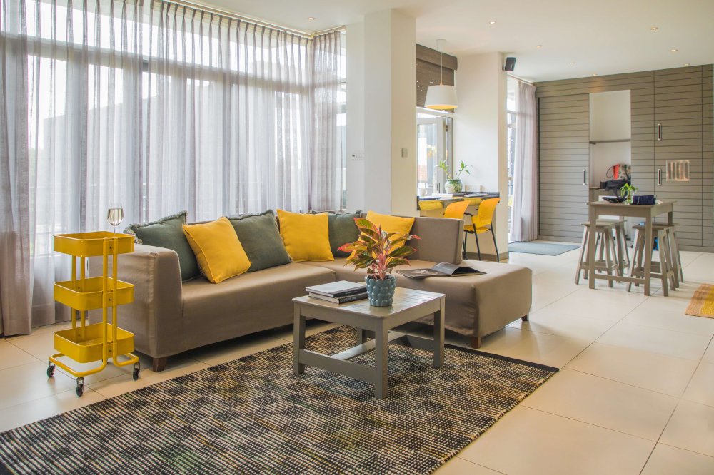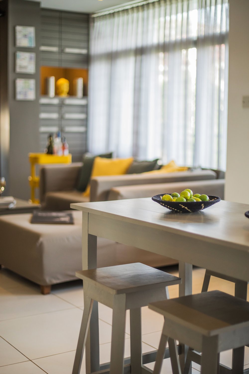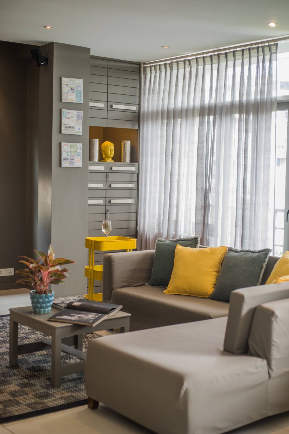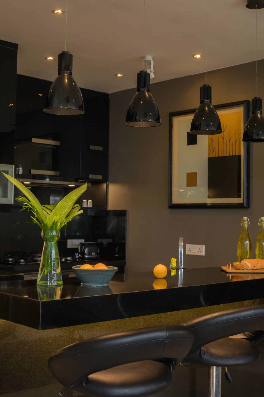 The apartment comes equipped with a fully functional kitchen, including microwave, kettle, toaster and fridge. It is also stocked with a full set of crockery, cutlery and a variety of glassware—wine glasses, champagne flutes, juice tumblers and coffee mugs. In case you would like to cook, we have also stocked the kitchen with silicon tools, pots and pans beside the usual amenities.