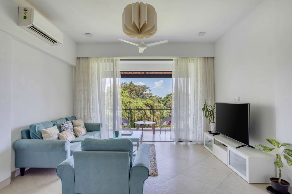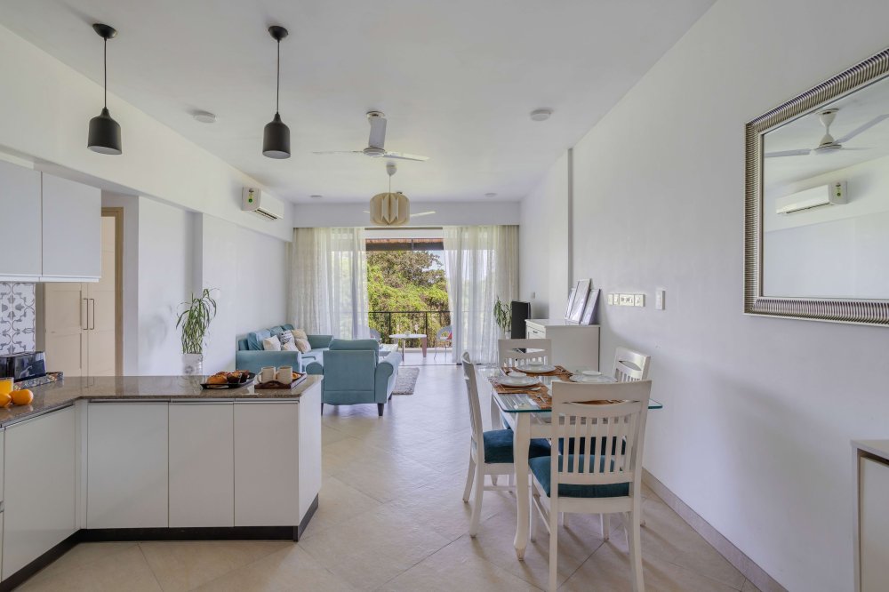 Luxury 2BHK apartment with exquisitely set living room, kitchen and bathroom in the heart of Goa. Situated in Candolim, 800m walk to the beach, the place has all the amenities specifically the wide infinity pool among the lush green fields. Located in one of the most plush and urban areas of North Goa, the home offers beautiful views of the sojourn beauty of grasslands and the sounds of birds like parrots and peacocks feel so divine.