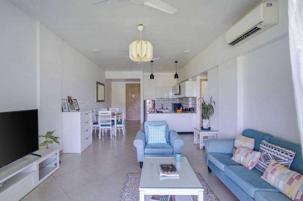Beautifully decorated apartment with all amenities viz gas stove, all utensils one can think of, electric kettle, RO water, premium beds, toiletries , desks, shoe racks, towels, iron, locker, AC , TV with netflix :D Can go on and so forth Mostly, a very courteous and friendly staff Location is superb as close to fisherman’s cove and minutes from beach.
