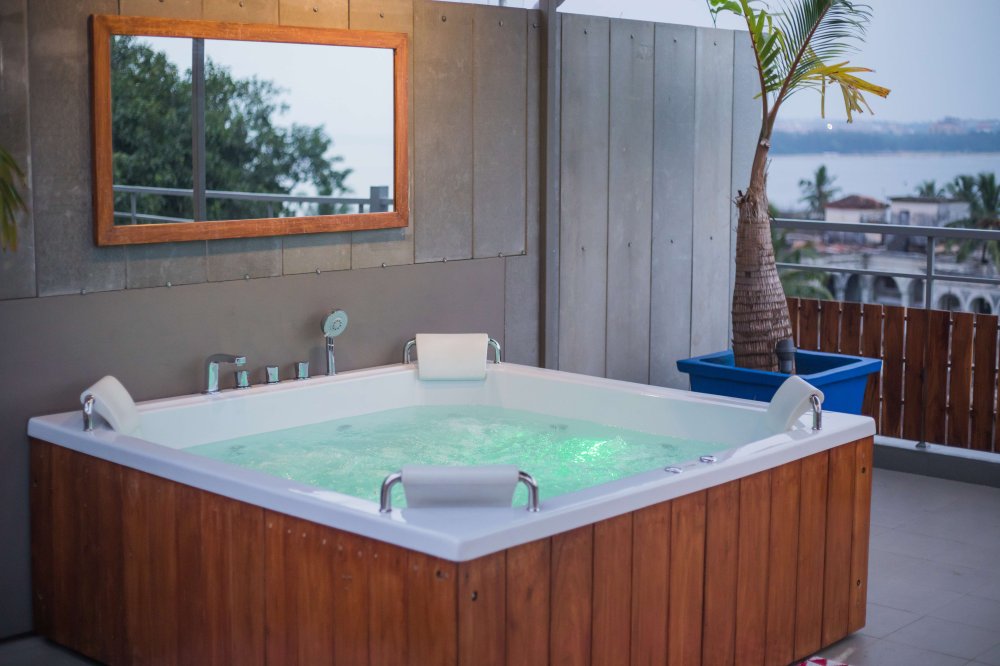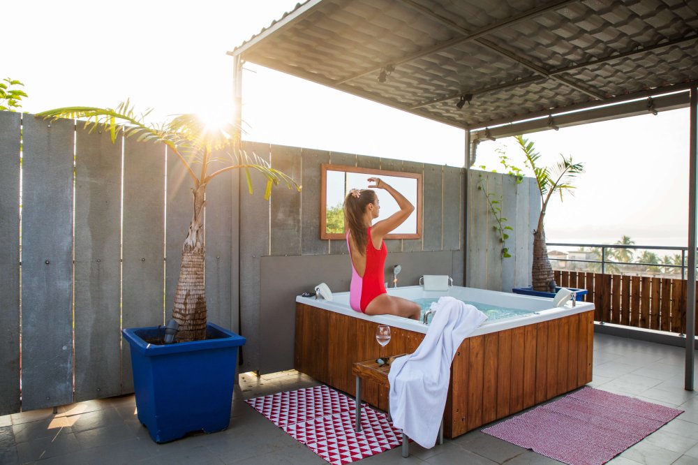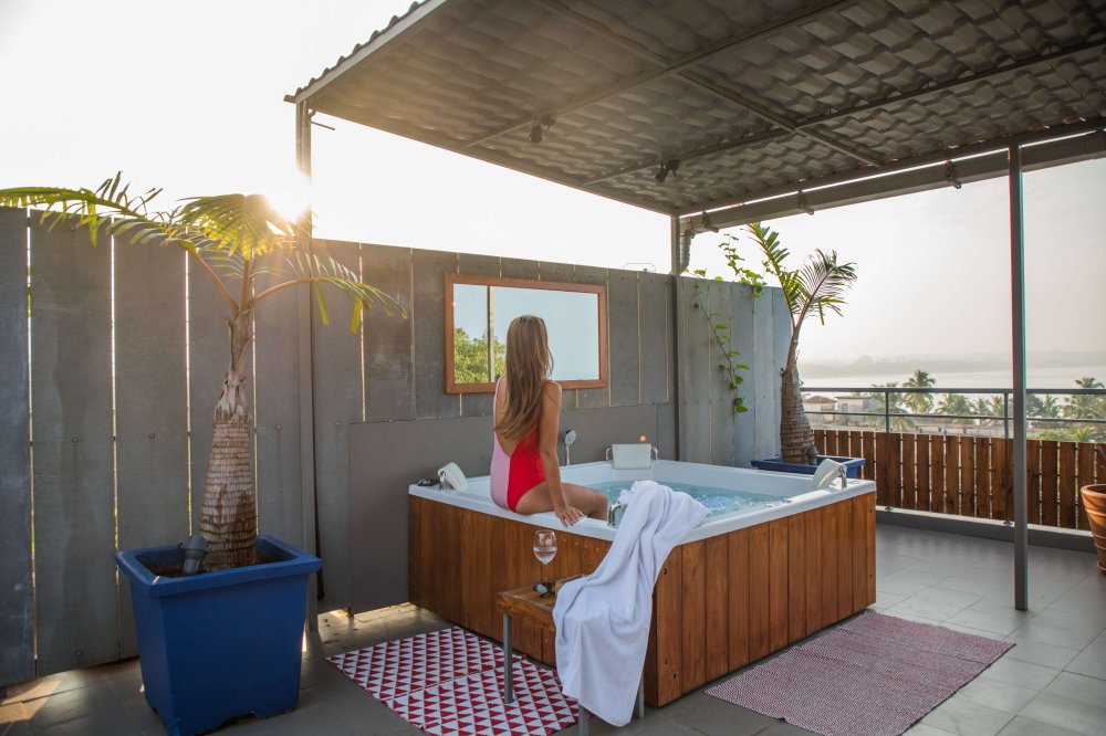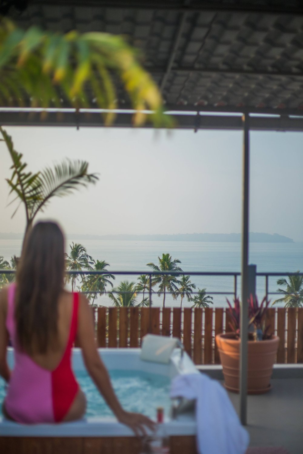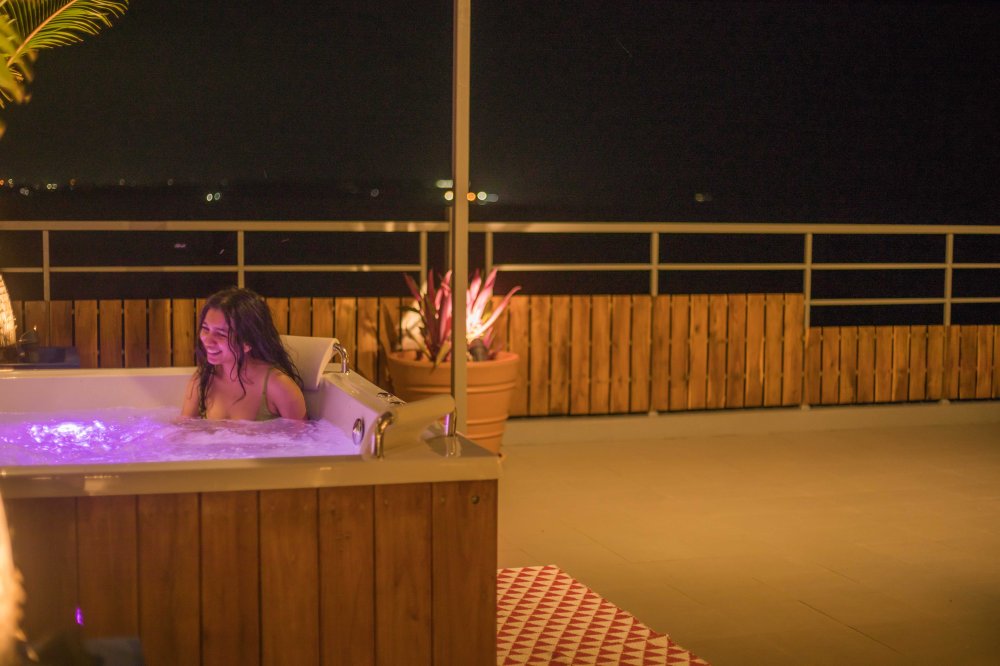 Our spectacular Sea View Terrace Apartment, designed with luxury and comfort, is set to pamper you on a thrilling holiday. Highlighting our terrace jacuzzi and an additional outdoor kitchen, the space overlooks Nerul bay and Panjim city across the river Mandovi. Setup for 2 guests with all the modern amenities you would require for a short or long holiday. The perfect romantic getaway!