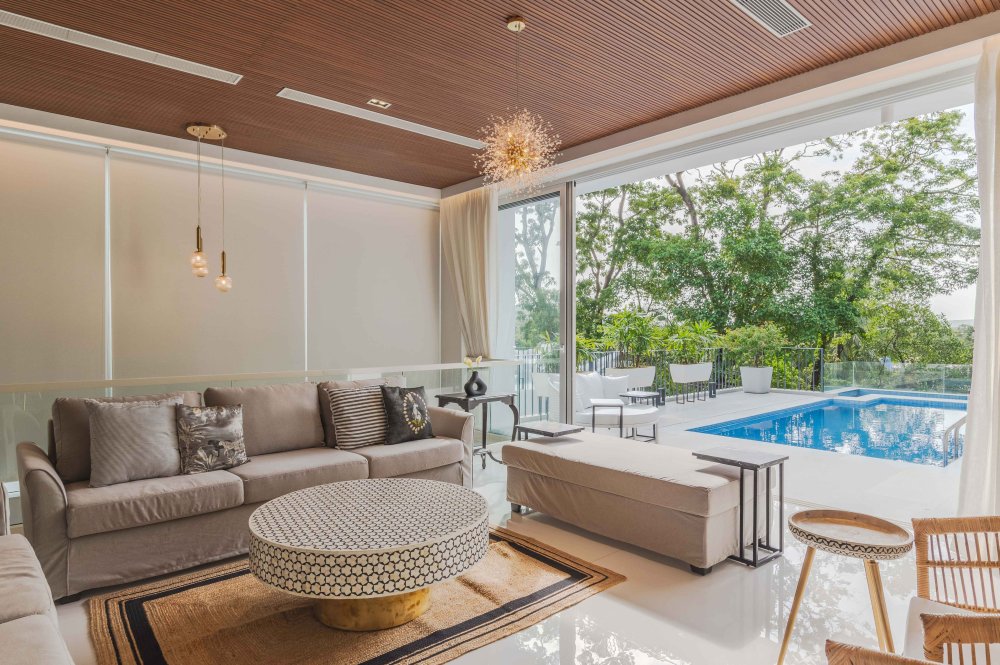 Aria is a seamless blend of modern architecture and antique sensibility. Spread across multiple levels and accessible via stairs and a private lift, the villa features four uniquely designed ensuite bedrooms, each with its own personality and charm. The master suite is a sanctuary of its own—complete with a luxurious bathroom and a private terrace overlooking the serene pool.