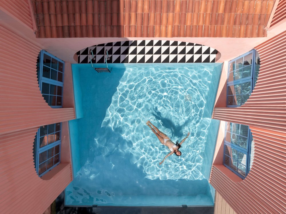 Rubia blends indoor and outdoor living effortlessly. The ground floor features an open-plan living and dining area that flows into a checkered verandah overlooking the central pool, jacuzzi, and garden. A stylish ensuite bedroom on this level offers pool views through oversized windows, while the kitchen sits tucked in a quiet corner, fully equipped and pool-facing.