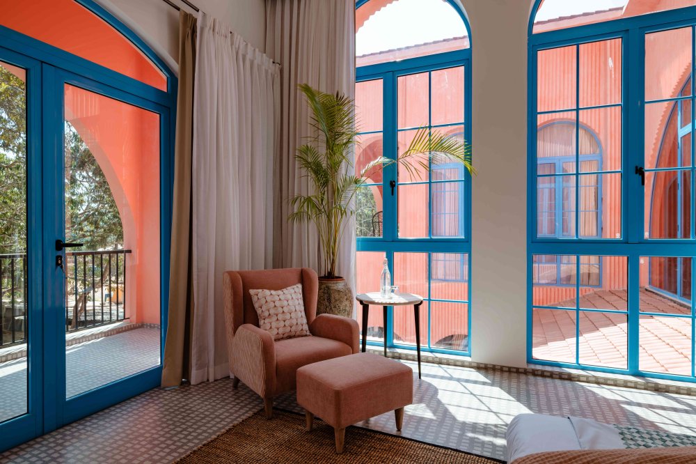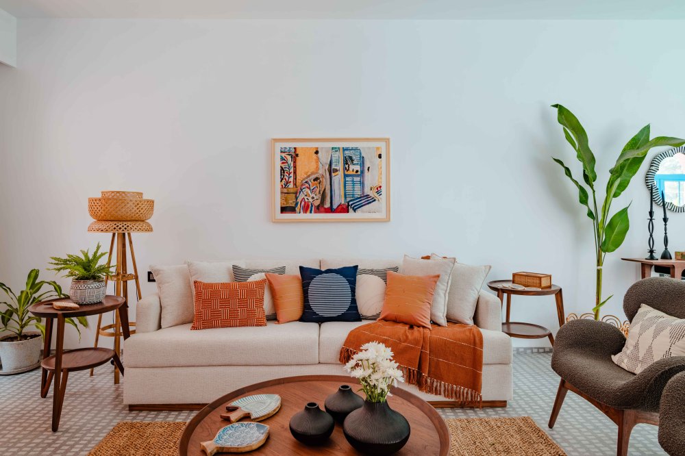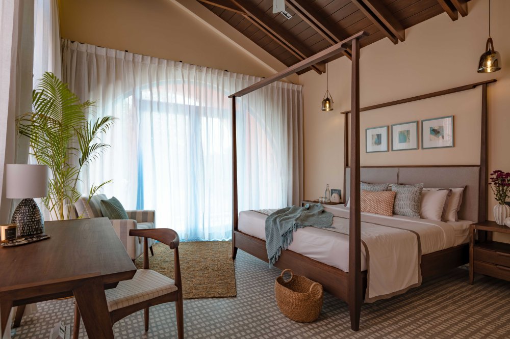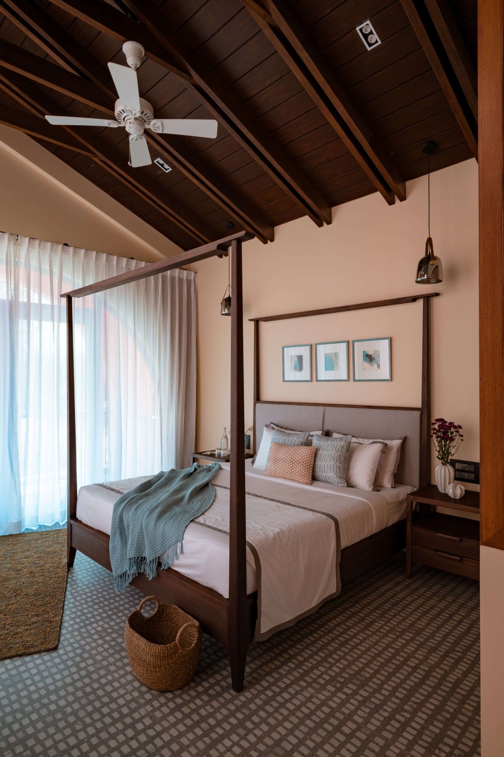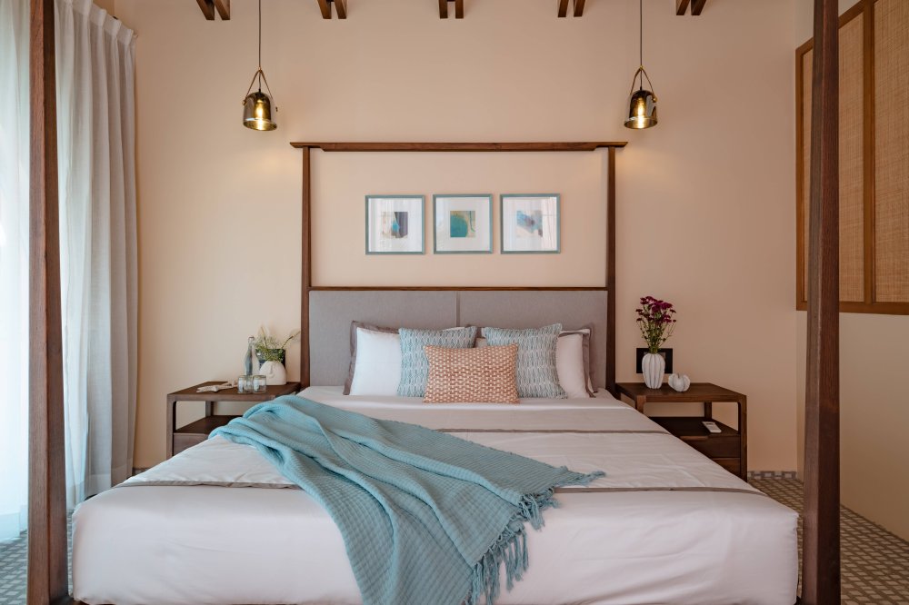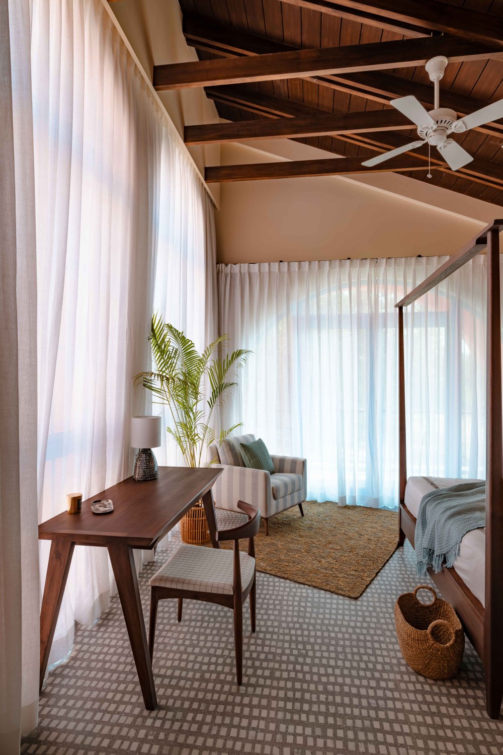 Step into the laid-back charm of Rubia, a 3BHK tropical retreat nestled in the heart of Mandrem, North Goa. One of six identical villas in a thoughtfully designed gated complex, this home brings together bold architecture, playful design, and open-air living. With its peach-hued facade, striking blue windows, and a private pool courtyard at its center, Rubia is a modern homage to Goa’s heritage—perfect for intimate escapes or larger group getaways when booked together.