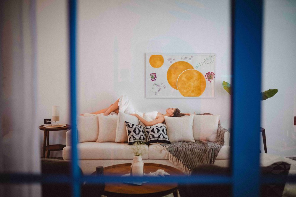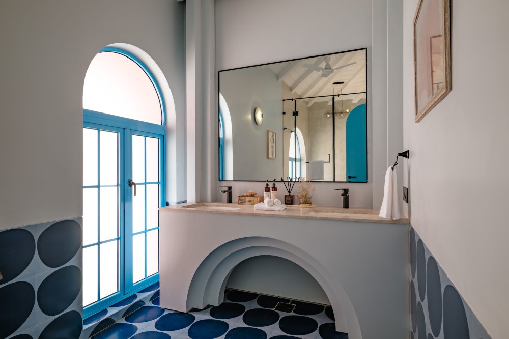 Upstairs, two bright ensuite bedrooms mirror each other across a central passage, both opening out to private balconies framed by palm trees and birdsong. Arched windows, vibrant textures, and handpicked finishes give every room its own distinct personality—inviting you to slow down, stretch out, and soak in the sunshine.
