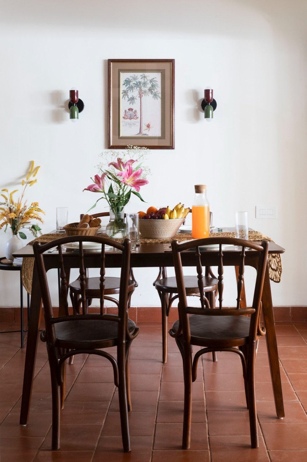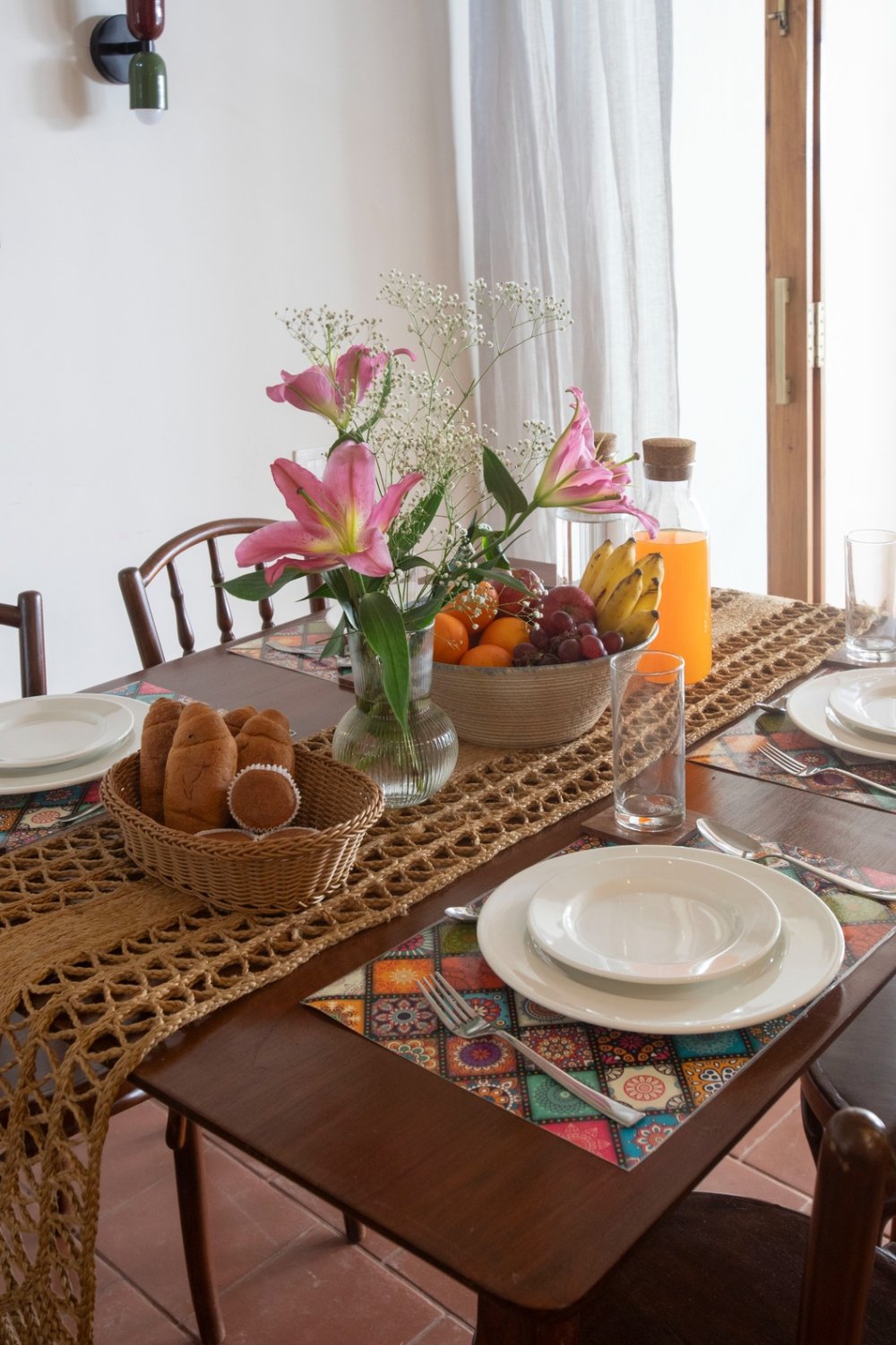 - The home comes with a fully equipped kitchen, which is sufficient for long stays too. It includes a microwave, electric kettle, refrigerator, dishes and silverware, stove, cooking basics (pots and pans), salt and pepper, wine glasses, dining table.