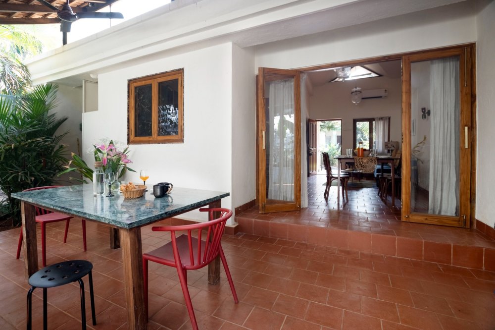 A luxurious 1BHK villa with a shared pool and jacuzzi, located near Vagator and Anjuna beach. This elegant villa combines relaxation with sophistication, offering top-notch amenities and lush surroundings for a memorable stay. Every detail is crafted to blend opulence with warmth, ensuring a refined and comfortable experience.