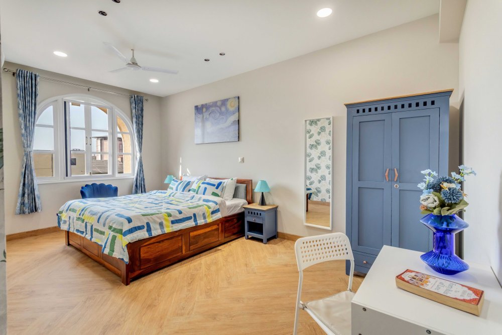 A premium 2BHK apartment in the heart of Candolim, North Goa, just 10 minutes from the beach. Thoughtfully designed, it features a chic living room, a modern kitchen, and 2 elegant bedrooms. Guests can enjoy amenities like a spacious swimming pool and a gym, nestled within a plush, urban setting for ultimate comfort and relaxation.