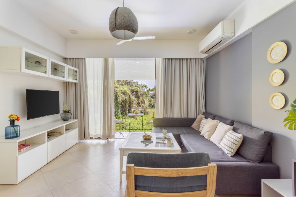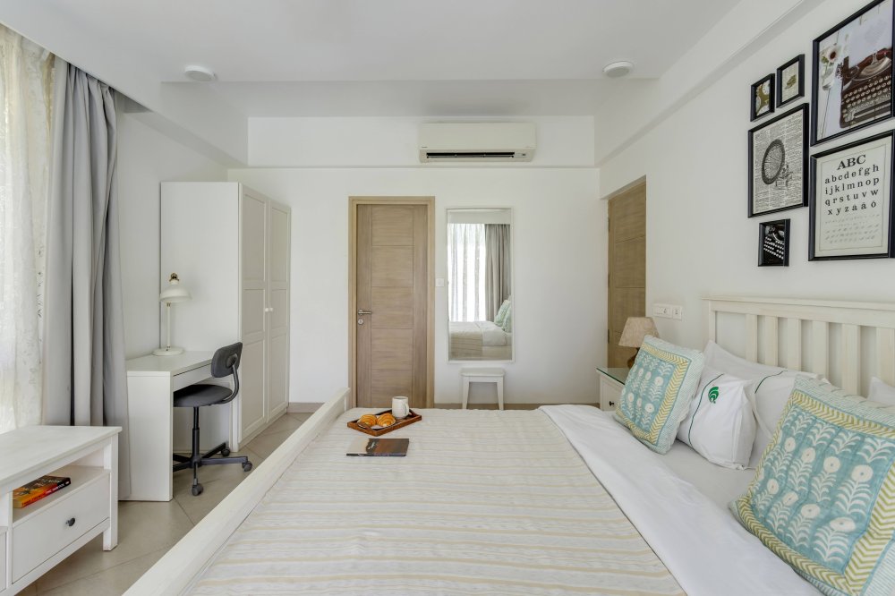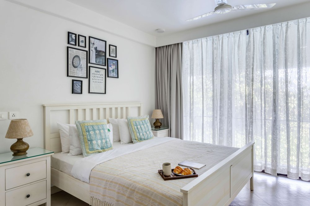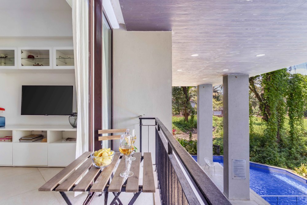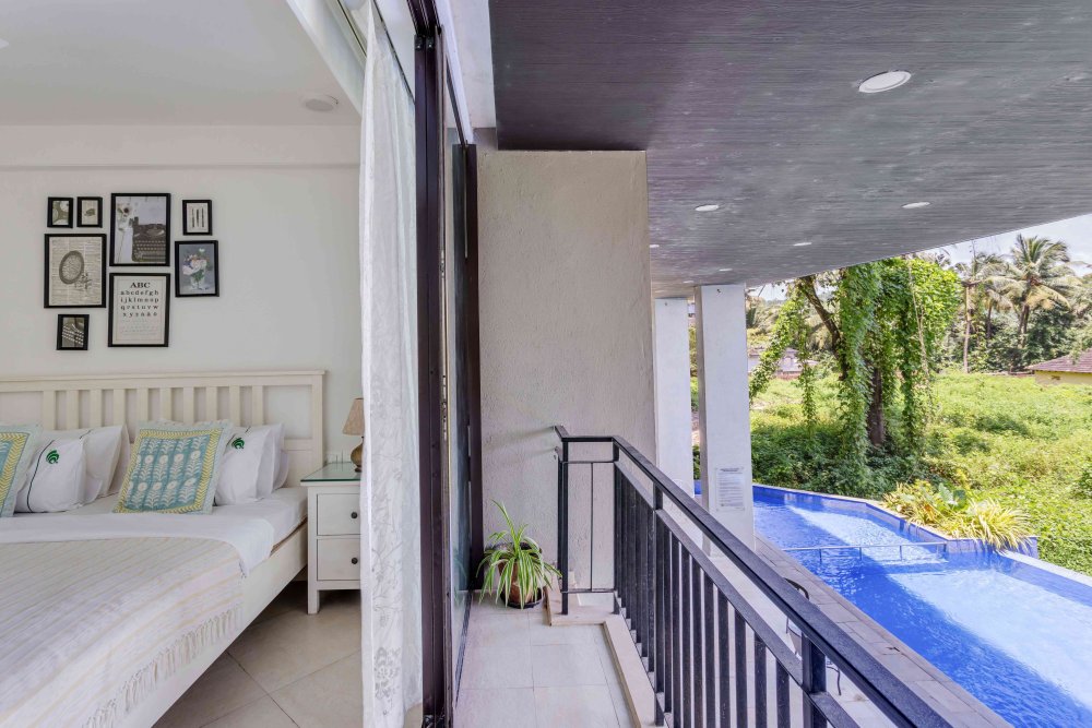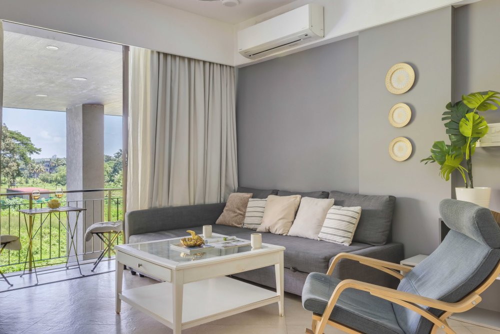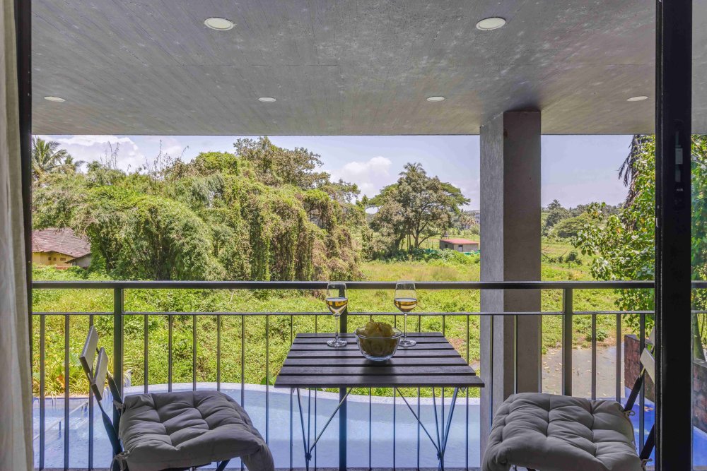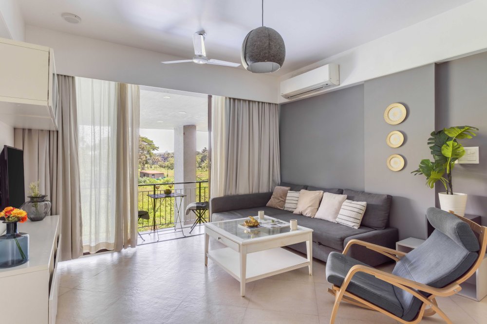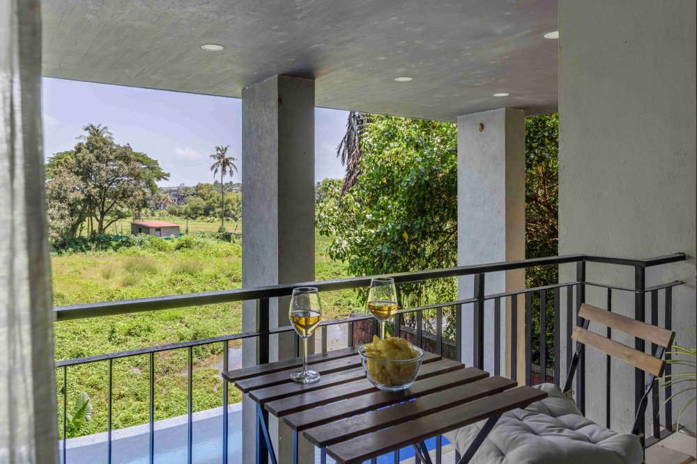 Luxury 1BHK apartment with exquisitely set living room, kitchen and bathroom in the heart of Goa. Situated in Candolim, 800m walk to the beach, the place has all the amenities specifically the wide infinity pool among the lush green fields. Located in one of the most plush and urban areas of North Goa, the home offers beautiful views of the sojourn beauty of grasslands and the sounds of birds like parrots and peacocks feel so divine.