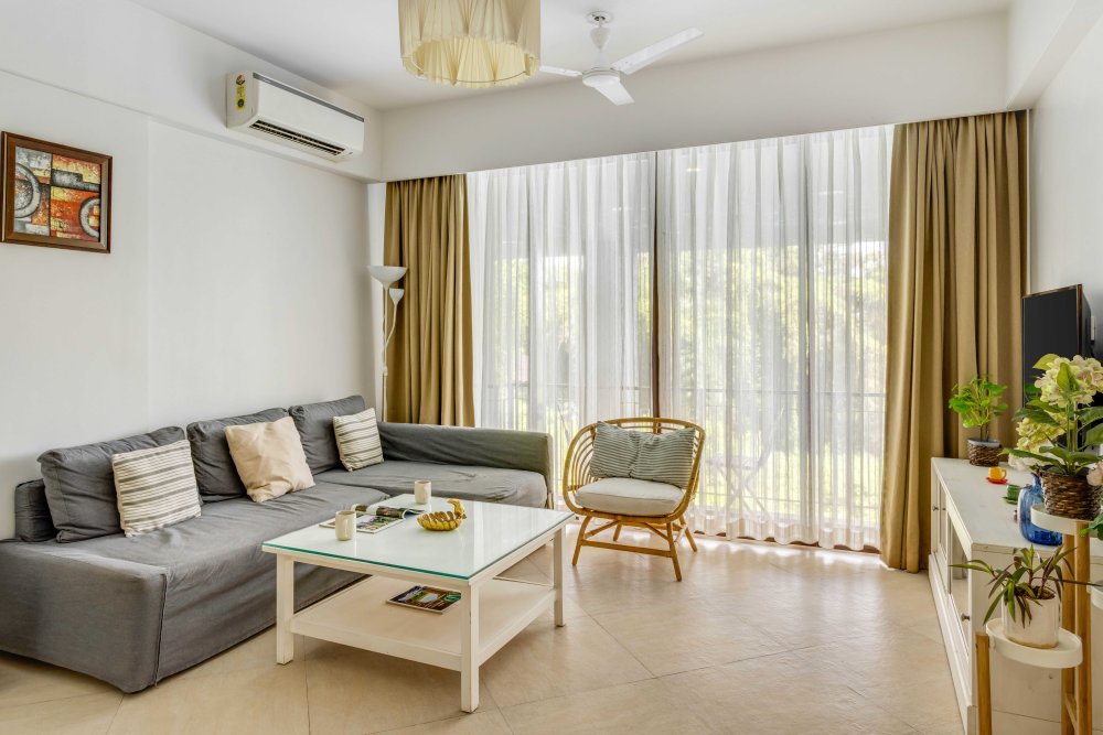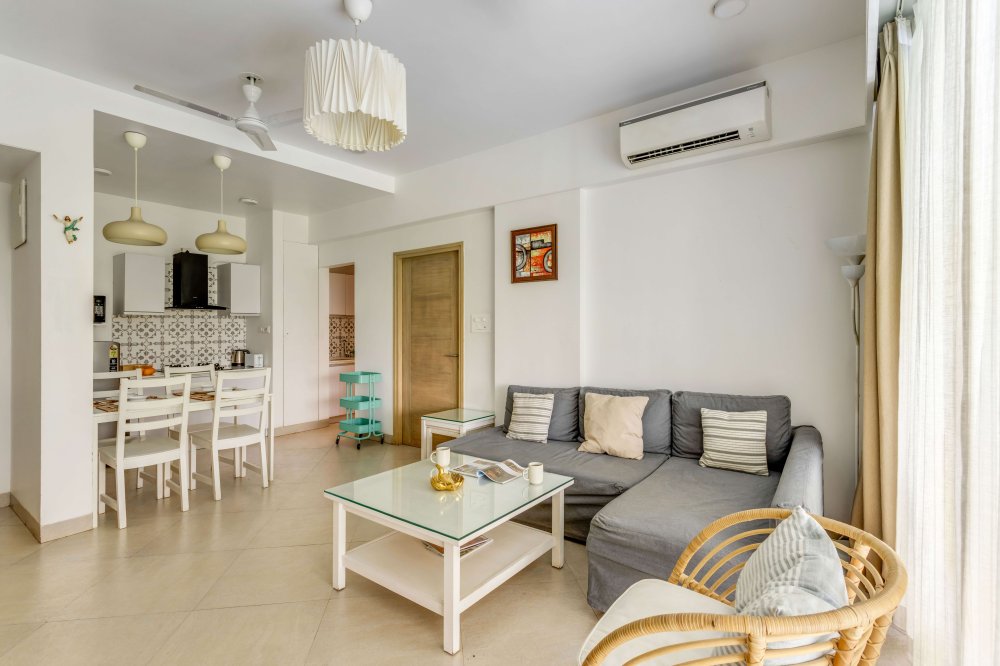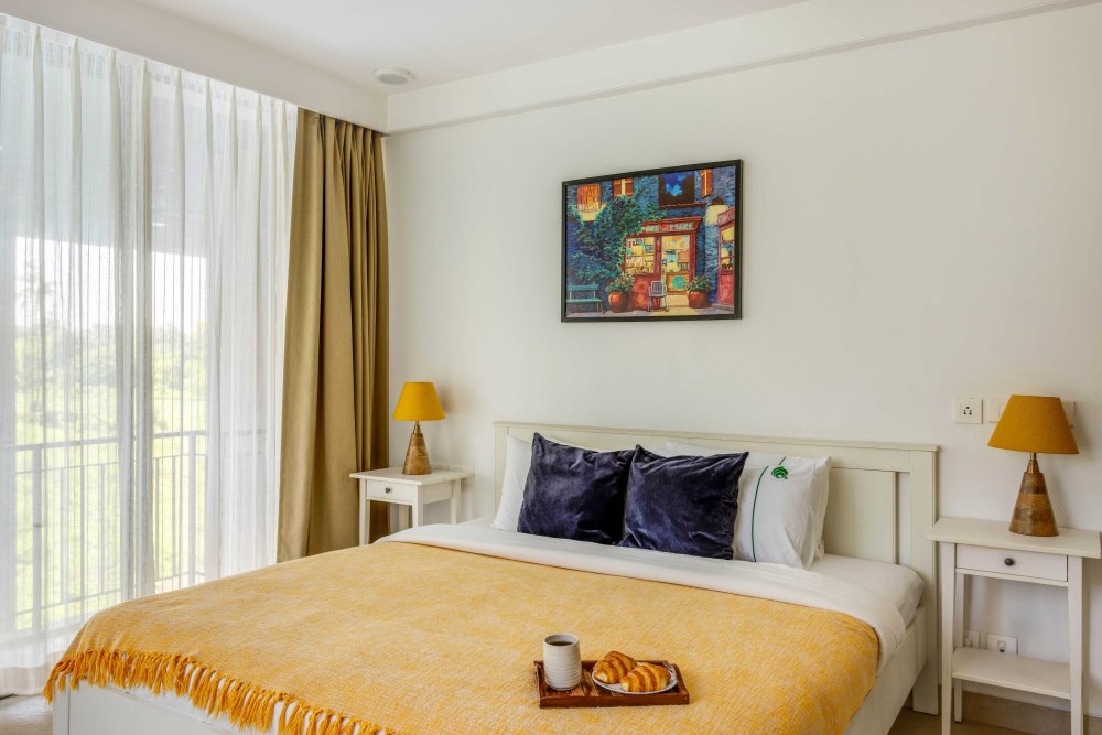 Luxury 1BHK apartment with exquisitely set living room, kitchen and bathroom in the heart of Goa. Situated in Candolim, 800m walk to the beach, the place has all the amenities specifically the wide infinity pool among the lush green fields. Located in one of the most plush and urban areas of North Goa, the home offers beautiful views of the sojourn beauty of grasslands and the sounds of birds like parrots and peacocks feel so divine.