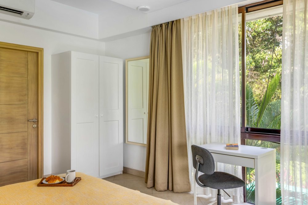 This home is a perfect blend of beauty and comfort, sparkling clean, modern, and luxurious. It features a fully appointed kitchen, a pristine infinity pool, and a beautiful garden. The entire apartment is air-conditioned with free Wi-Fi and is situated in a safe, private complex with 24/7 camera surveillance, supported by housekeeping, service staff, and security.