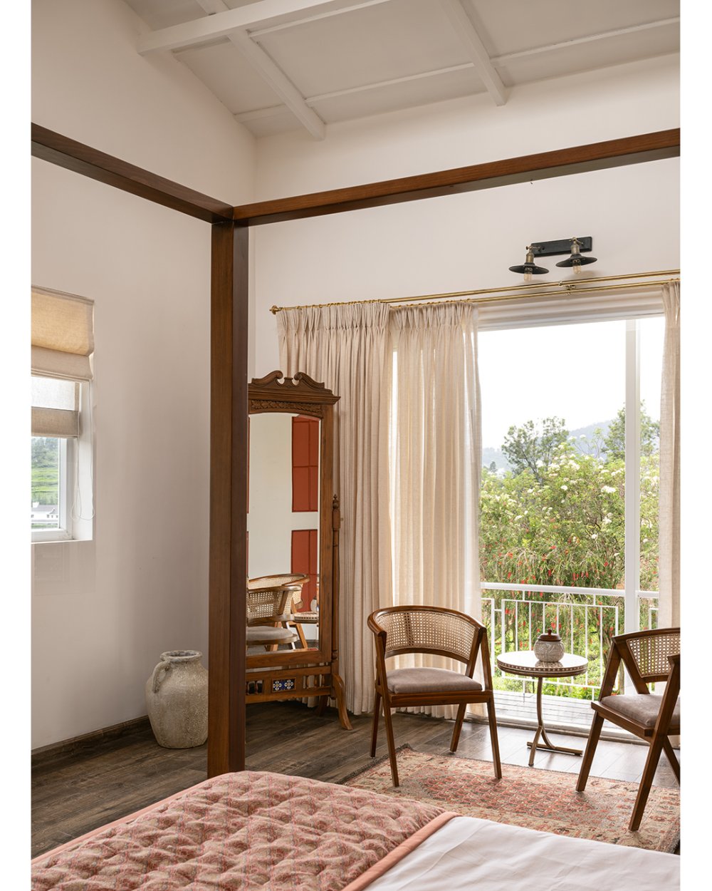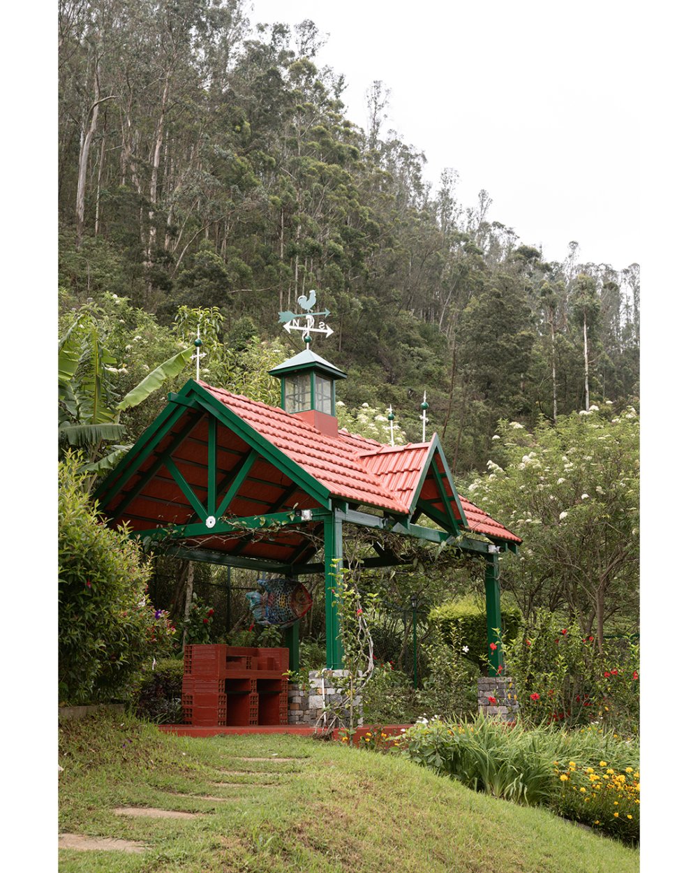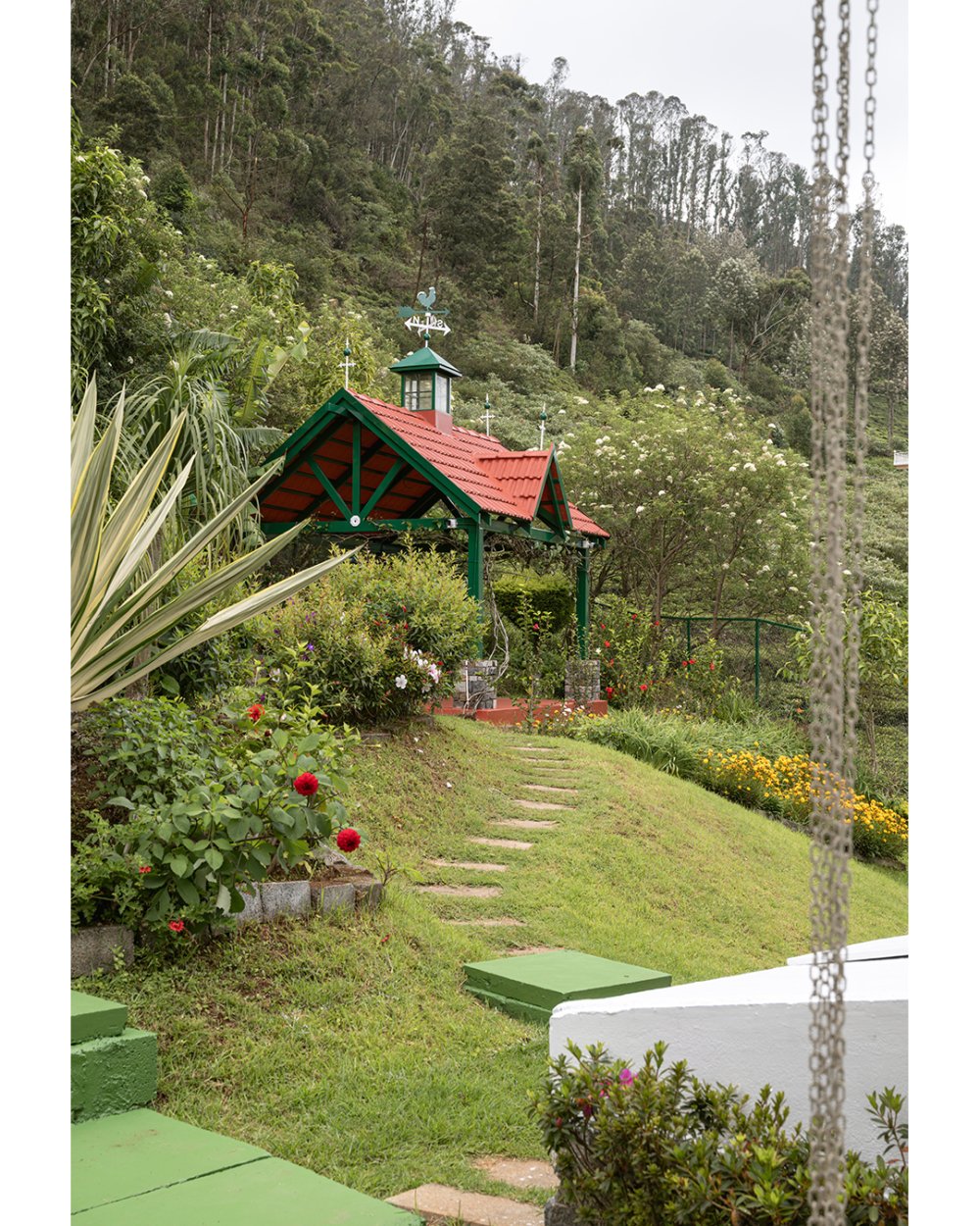 The master bedroom is a serene haven, complete with an extended balcony furnished with a table and chairs—perfect for morning tea or sunset views above the misty slopes. The second bedroom connects directly to the backyard and a stone path that winds through the gardens to a charming gazebo, tucked beneath towering evergreens and facing the iconic winding roads of Coonoor. The third bedroom also offers a balcony with lovely garden and gazebo views, making it a cozy and scenic corner of the home.