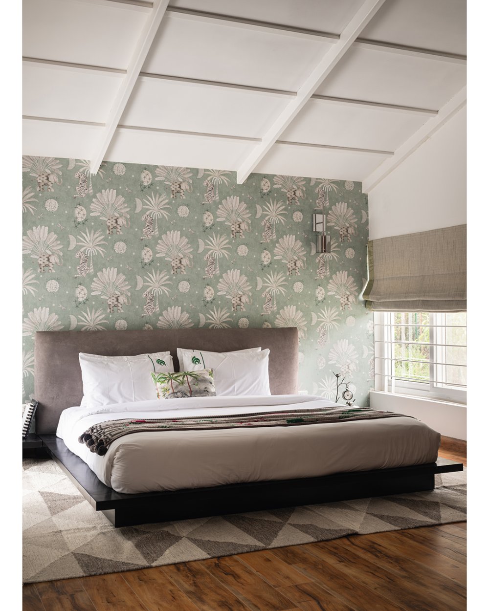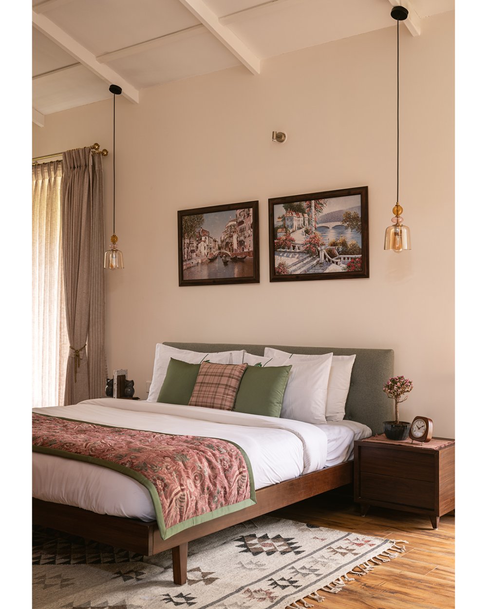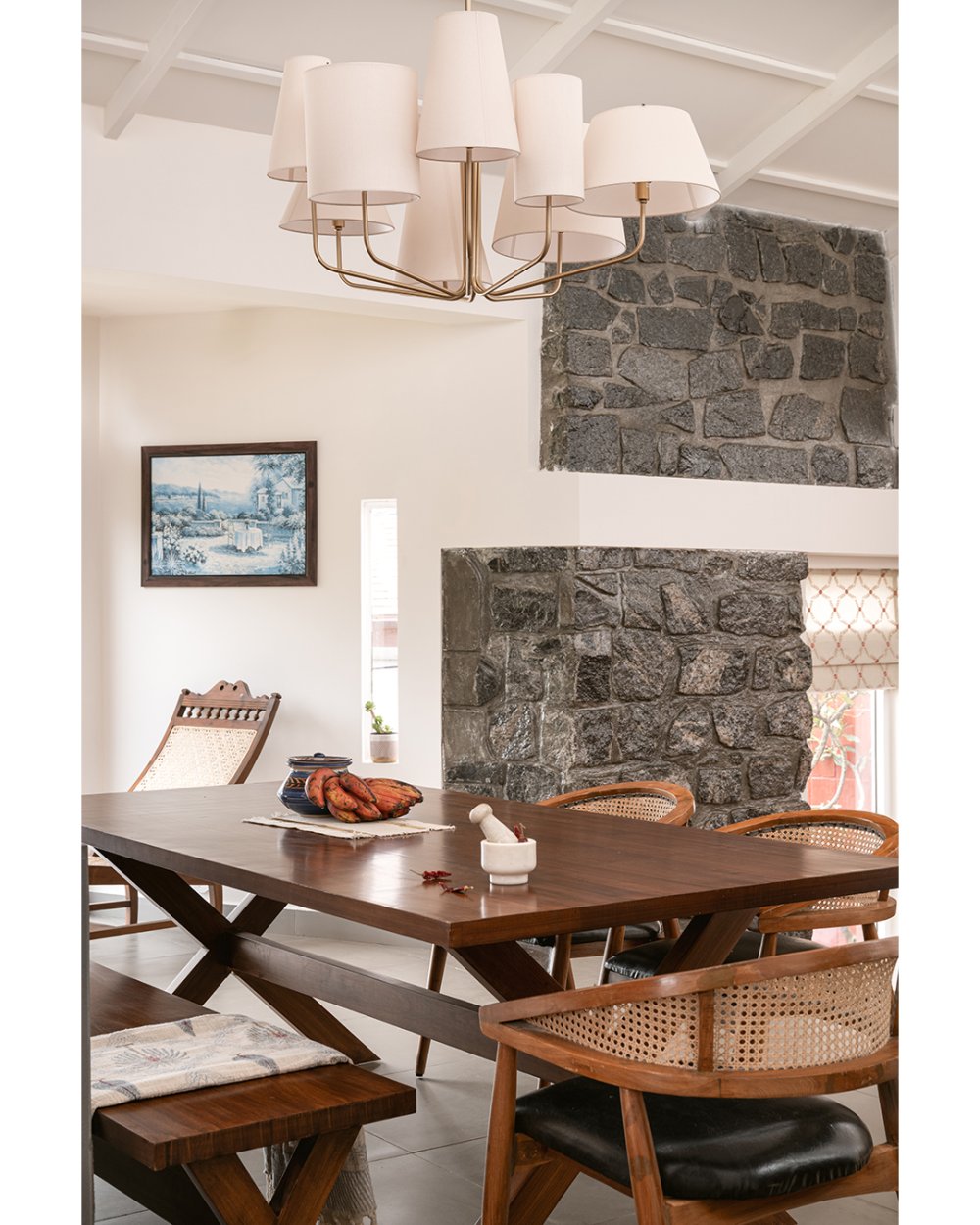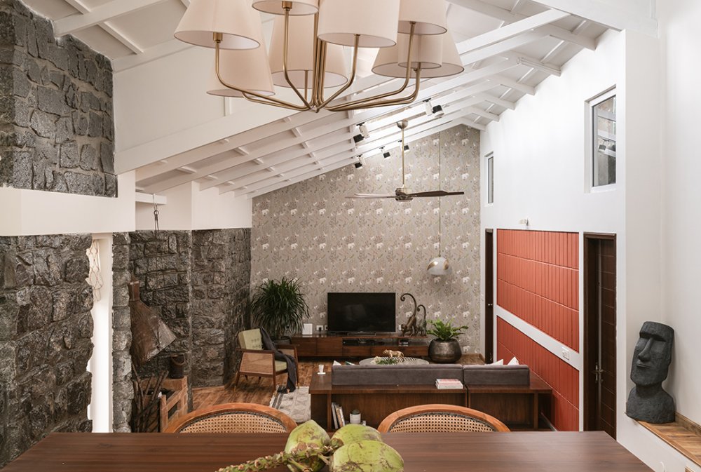 As you enter the villa, you're welcomed into an intimate lounge that opens into a plush main living room—thoughtfully designed with soft-toned furniture, a warm fireplace, and a floor-to-ceiling picture window that frames the Nilgiris like living art. The open-style modular kitchen adds to the villa’s airy flow, making it ideal for long conversations over coffee or slow brunches by the hills.