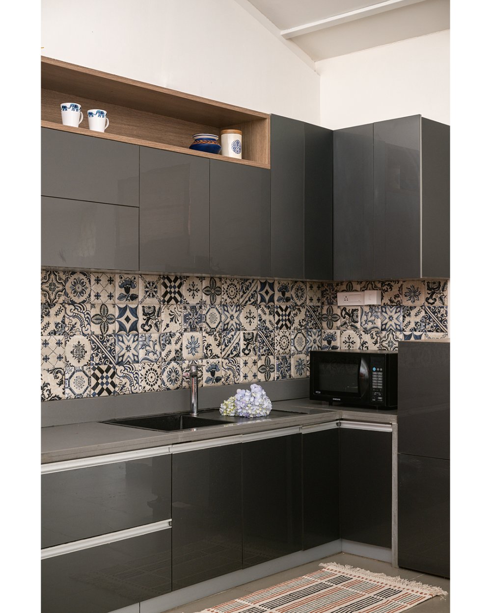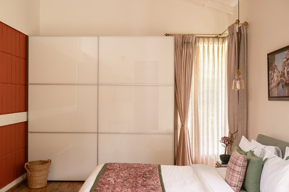 - The home comes with a fully equipped kitchen, which is sufficient for long stays too. It includes a microwave, electric kettle, refrigerator, OTG, dishes and silverware, stove, cooking basics (pots and pans), salt and pepper, wine glasses, dining table, and toaster