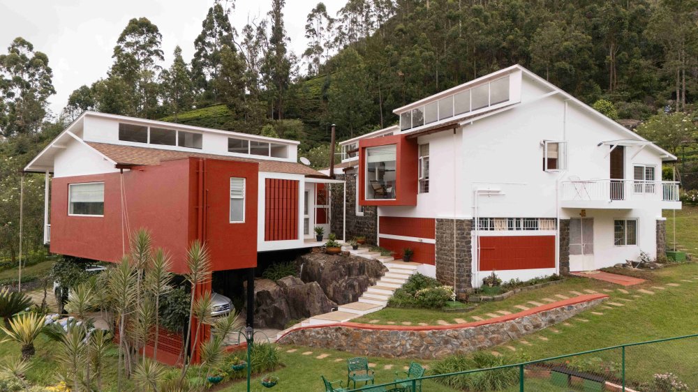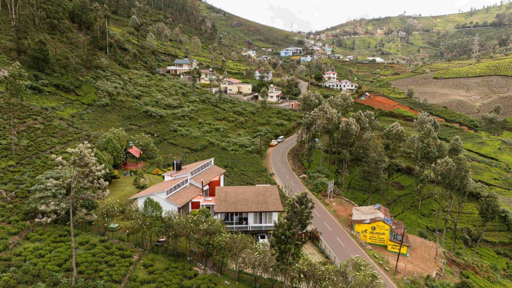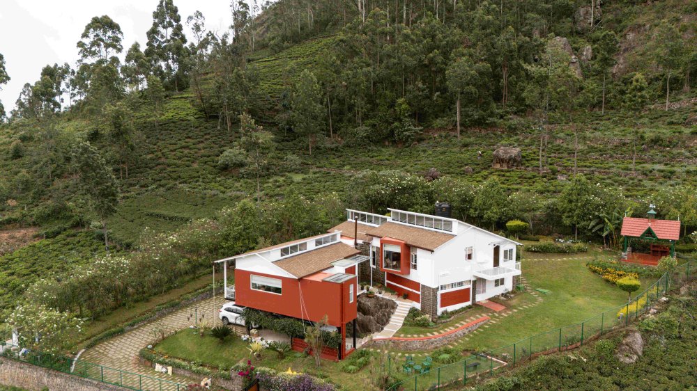 Perched amidst the rolling hills of Coonoor in the Nilgiris, this striking 3BHK villa redefines hill station luxury. Designed in sleek orange and white with a futuristic silhouette, the villa seamlessly blends into the lush tea plantation landscape, offering front-row views of cloud-kissed hills, winding mountain roads, and towering trees. A true escape into the calm, crisp air of Tamil Nadu’s highlands.