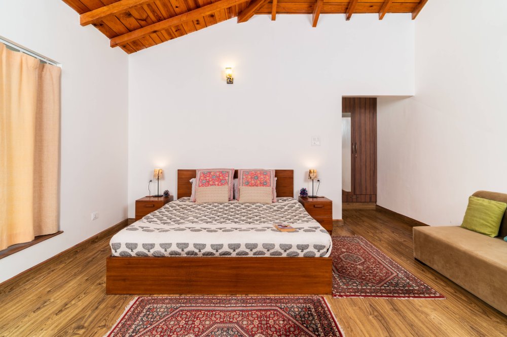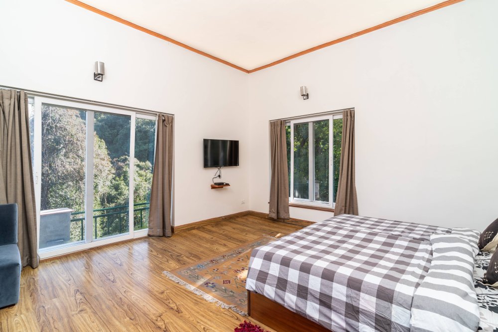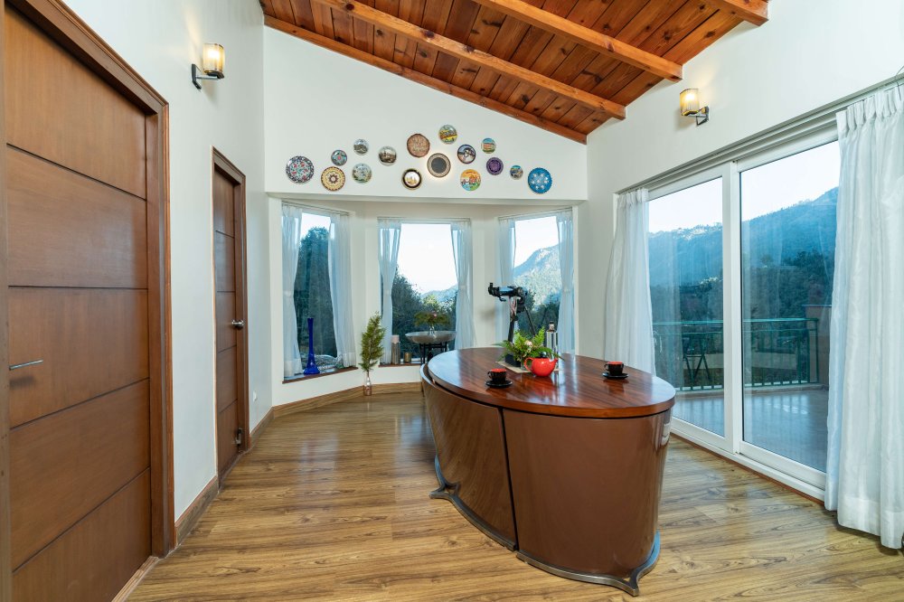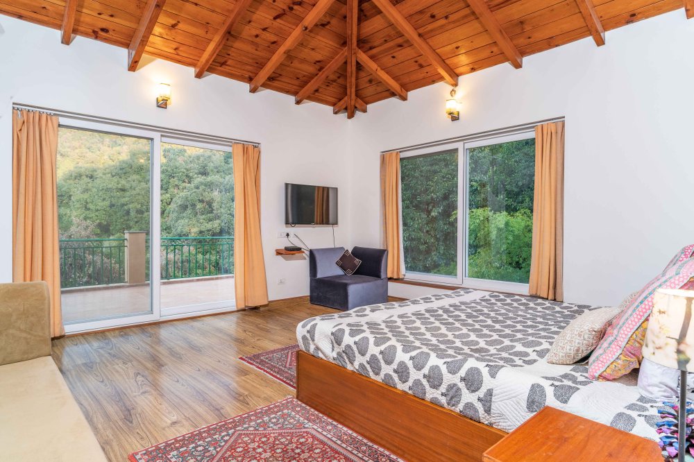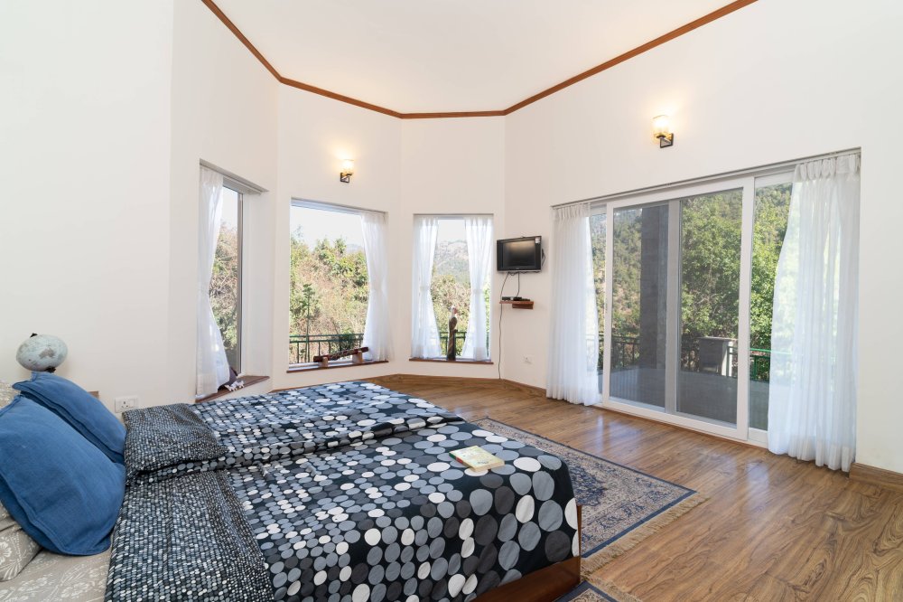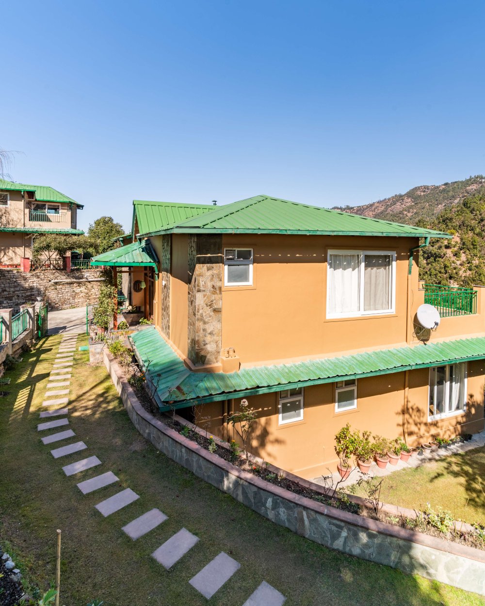 A beautiful hill chalet with 3 bedrooms , well appointed with all facilities . With pristine hill and reserve forest views . It is nestled in a premium gated community near Mukteshwar . It is Serviced with caretaker . You can enjoy hikes , visit a artisan cheese farm or just enjoy the views over a BBQ in the balcony or covered patio